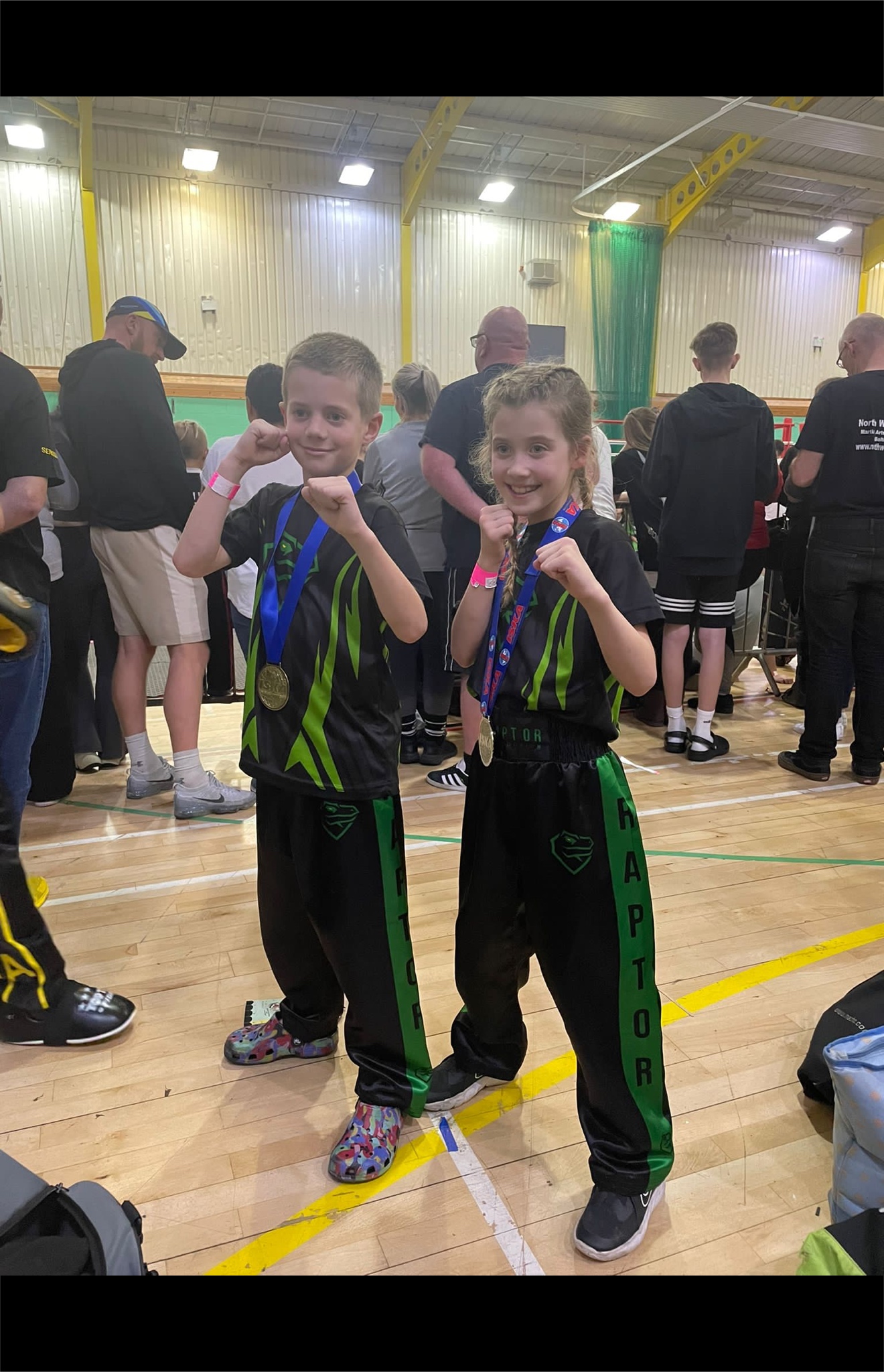 A small squad of 2 travelled to north Solihull for the ISKA British Open kickboxing tournament today. Harry went up a weight category and convincingly won both his fights in the light continuous category, taking gold. Darcie also won both her fights in the points and light continuous brining home 2 golds.
